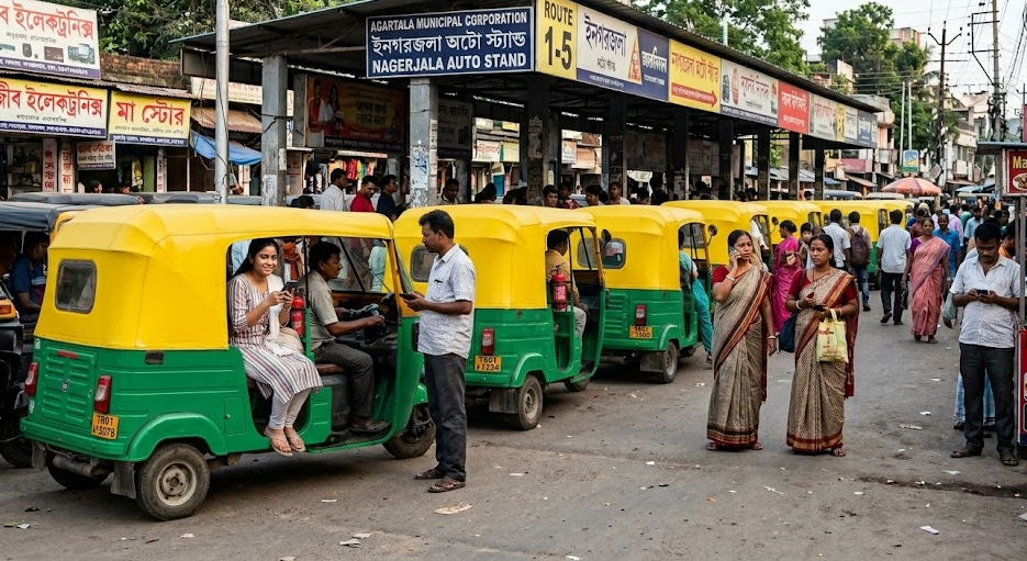 Tripura’s towns and cities are compact. Most daily trips are short. Because of this, large taxis and metro-style cab services are not always practical.